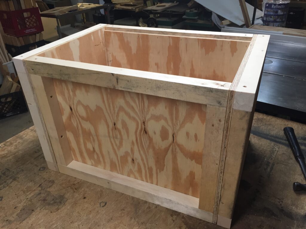 Fasten walls together. Sides go inside the ends. I use a framing nail gun with 3" nails to do this, but screws will work as well. Make sure top edges are flush as you join them. Do not be overly concerned with squareness yet, just flush along the top and down the sides.