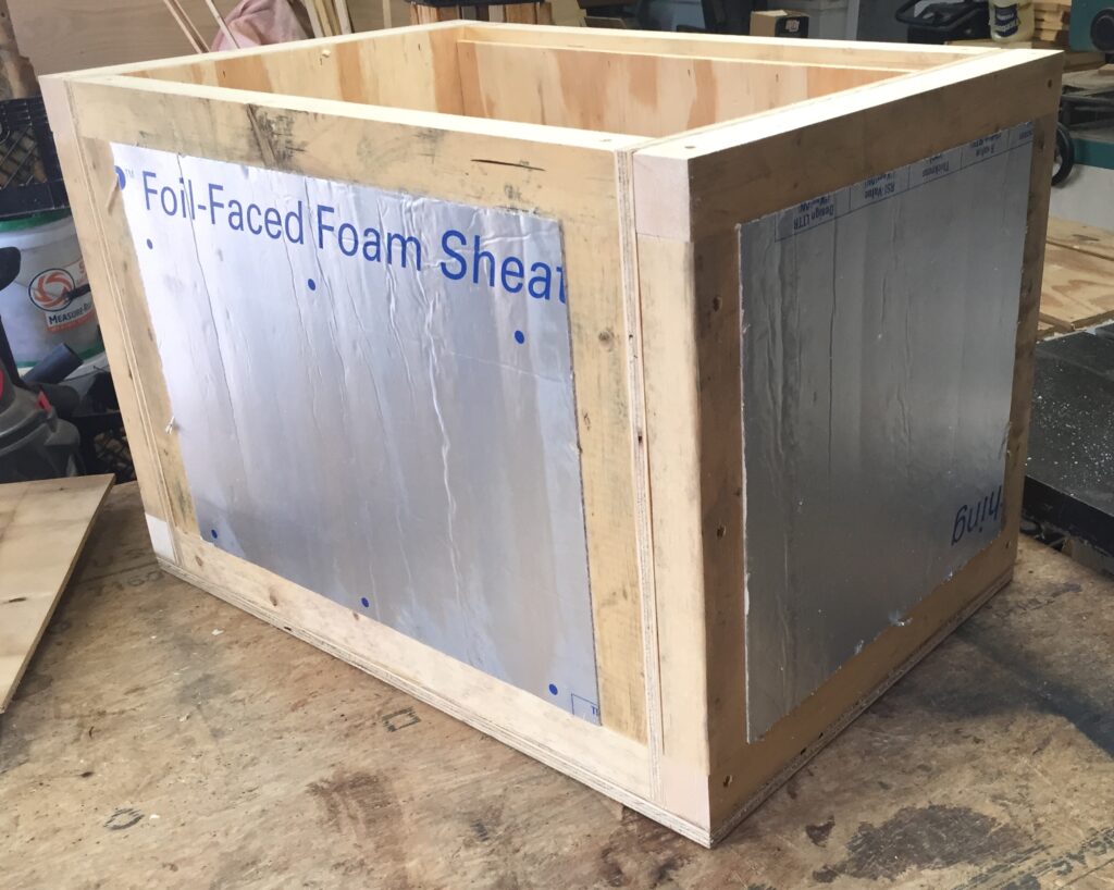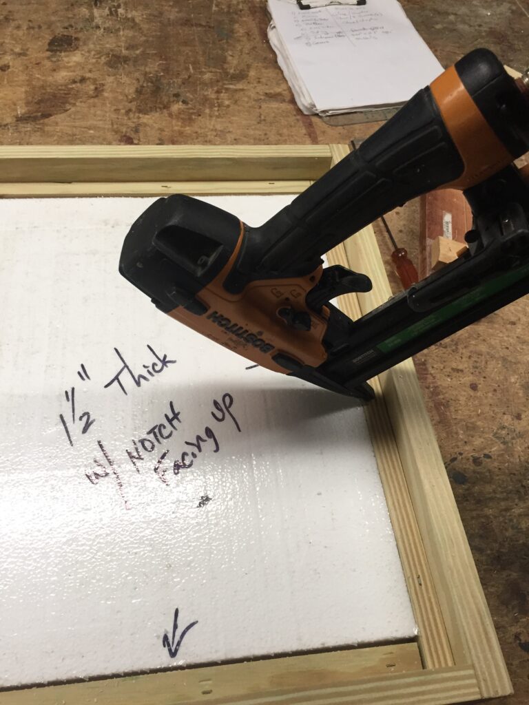 Insulate. Cut the 1-1/2" board insulation into pieces that will fit inside the framework. I cut my insulation slightly larger (1/8") than the area between the framework so that it is very snug when pressed into place. I prefer to use the table saw to cut this so the edges are all very clean and fits snugly.